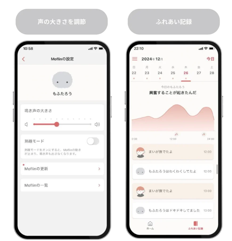 若主人常溫柔抱擁 Moflin,「牠」會發出呼嚕聲或跳舞展示歡快,經穩定相處還會培養出平和個性;反之,若常接收負面情緒或遭無視,則會展現悲傷反應。