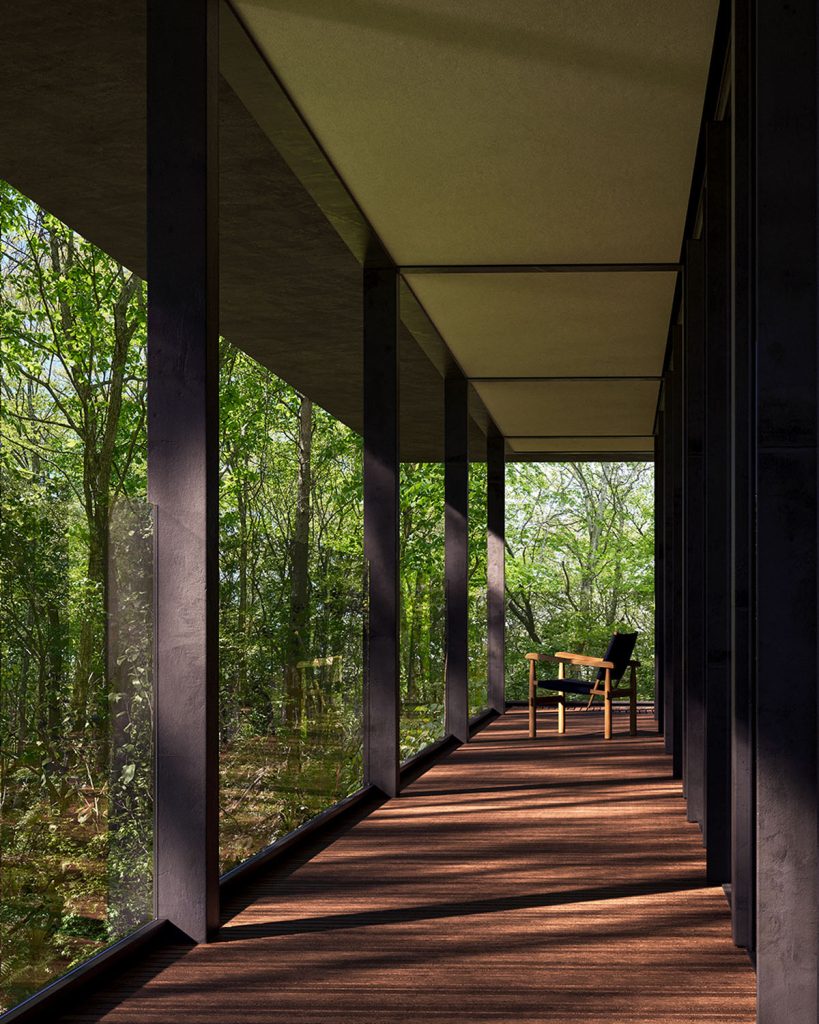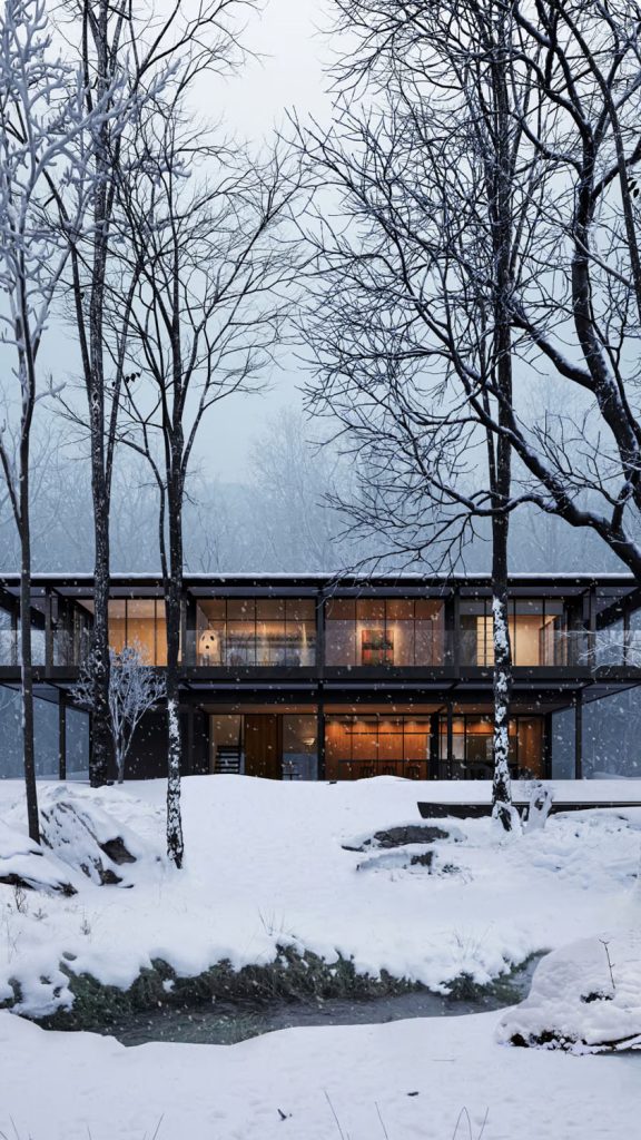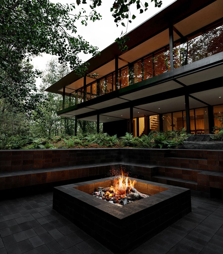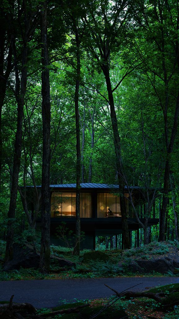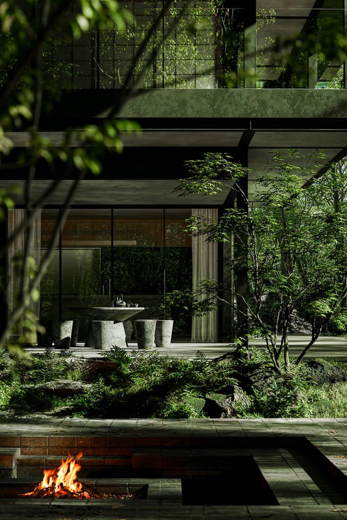 廚房及餐室以架空柱廊、玻璃門,連結戶外火爐區和叢林四季景致,營造開揚通透感。每座 MASU 從地毯、窗簾到紙燈具等選物,均簡約中富質感,加上四間精心規劃的書房、和室、私人影院及睡房,還有浴室及桑拿設備,可滿足數寄者棲居自然的心願。