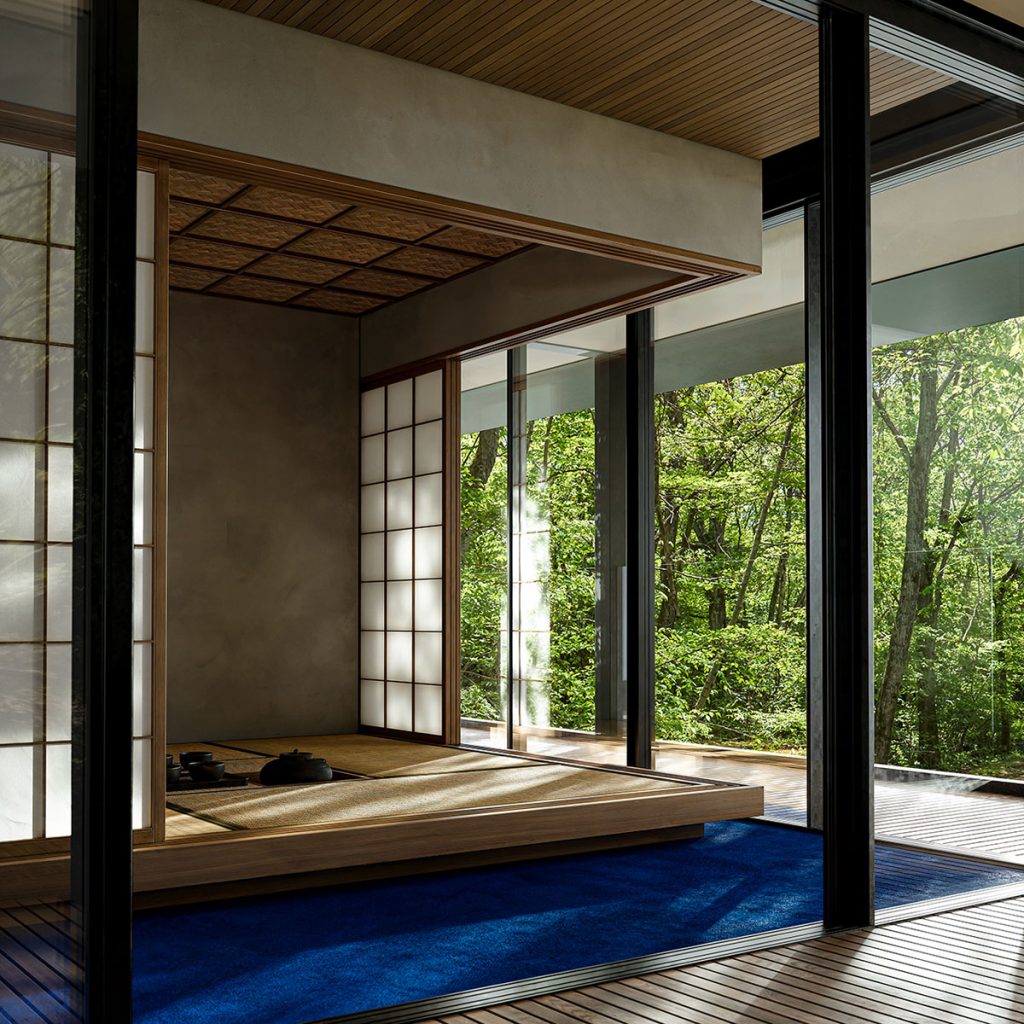 MASU 別墅延續這份靈活與創新。片山採用可追溯至安土及桃山時代的「數寄屋」(Sukiya-zukuri)概念,因其有多重文化意涵:古時的「數奇者」(風雅人士)為擺脫束縛,會按各自喜好去建造茶室,故「數寄」日語發音「Suki」可解作對和歌、茶道及花道的喜愛,是高雅生活的體現;此外,這詞彙又指向建築中尚未完成的「空缺」,鼓勵用家發揮想像改動柱子、壁紙或壁龕鮮花等佈置,創造多元裝潢。