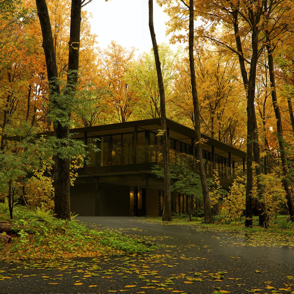 片山依循「自由」和「多變」態度,參考盛裝清酒的方形木杯「枡/MASU」形態,以八組 4×4 米的方格單元和檜木建材等組成別墅。踏入屋內,則可見挑高的玄關、與金屬細柱懸臂式樓梯之間,垂掛着美國藝術家野口勇的巨型吊燈,定調一樓和二樓的優雅格局。