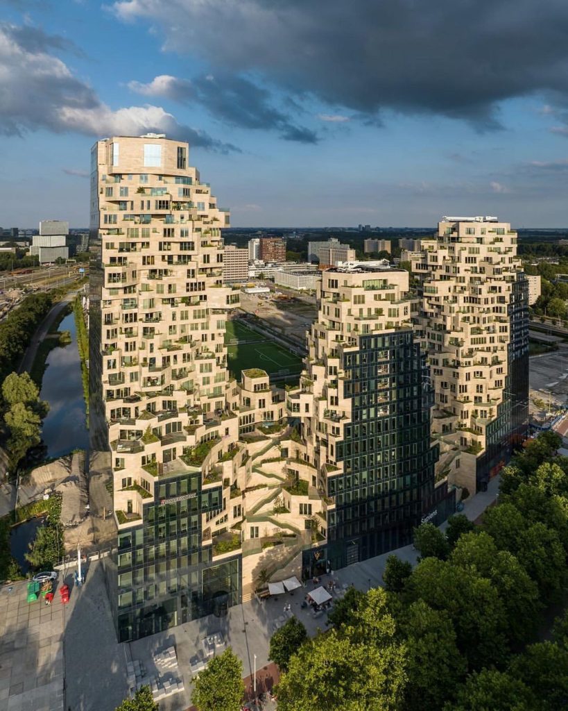建築彷彿漸漸演變成一個競技場,卻不再是鬥高,而是在鬥「吸睛」,背後也在提倡環保和可持續發展的理念。荷蘭建築事務所 MVRDV 在阿姆斯特丹 Zuidas 商業中心設計的大廈,三座不規則外露的大廈都夠搶眼了吧,如像撕開了內部,當中一個最讓人佩服的野心是種植超過 13,000 棵樹和植物,除了綠色一片,樹木的生長更會慢慢改變大廈的形態,有機地讓大廈的外觀持續演變,成為一道變化的風景。而樹木的生長絕對沒可能由人來控制,人們便無法知道最後的「長相」如何了,再者,合該是沒有最後的最好吧。由它繼續生長,真正讓建築與自然共生。