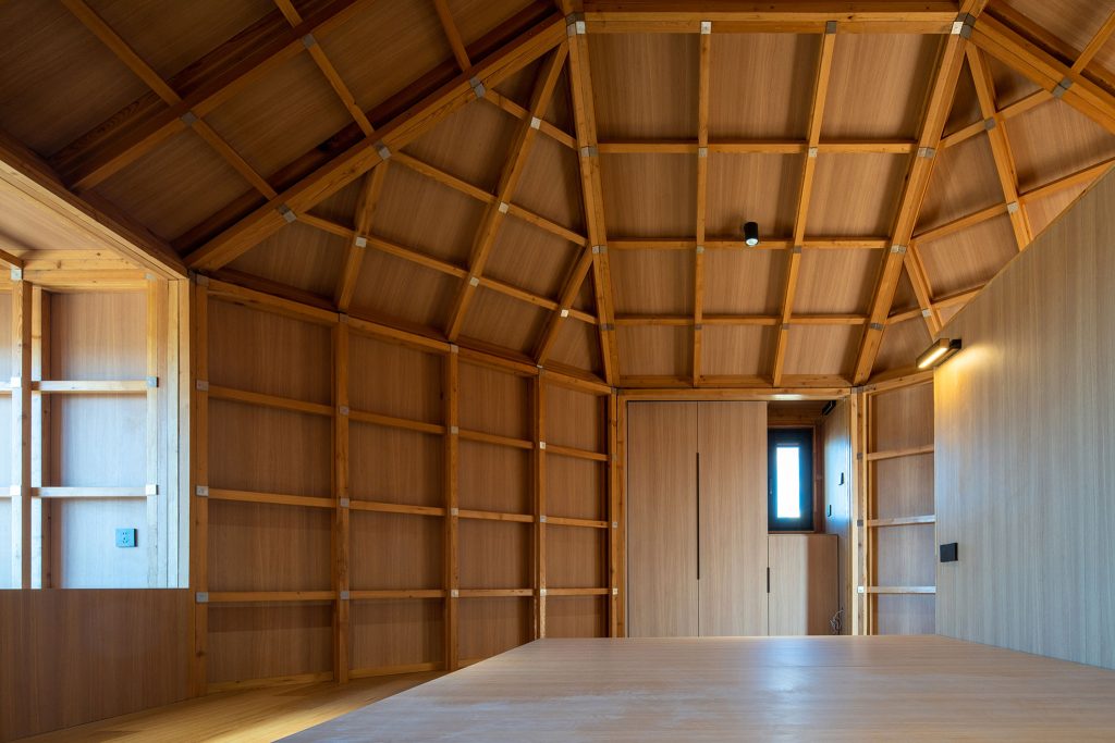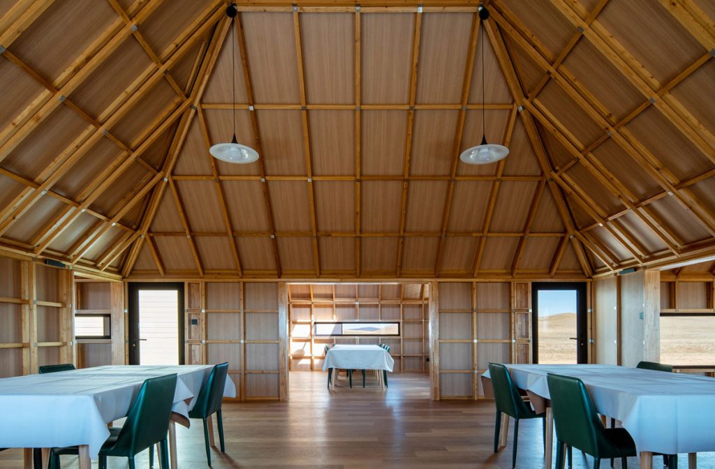 「正鑲白旗中心」就以「輕木桿式結構蒙古包體系」作研發體系,運用幾何重構、柳條和牛皮繩的綁紮,傳承蒙古包的哈那及拱頂特色。建築空間內,又植入單元模組及組合拓展機制,構成更多樣化和開放的起居環起;加上複合維護結構與能源系統、無線遠端智能控制系統等,建築又可高度節能、增效、精準監測科研數據等,既可滿足當代需求的遊牧人住居,也能成為遊牧研究資料庫。