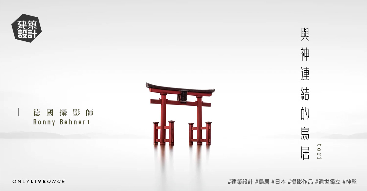 有位德國攝影師 Ronny Behnert,拍下一輯《鳥居(Torii)》系列作品,特意走到最偏遠的地方,不惜上山下海,以捕捉神社與鳥居的「孤獨」的身影,最特別是作品中的鳥居遺世獨立,極是神秘和引人入勝。他刻意運用減光鏡去進行長時間曝光,目的就是要去掉周遭環境的干擾元素,而經過長時間曝光後,天空一片澄明,海面也一片平靜,細心觀賞之下便有如獲得心靈上的慰藉。Ronny Behnert 創作背後的理念是:宗教使人平靜,鳥居是與神連結的一道門。