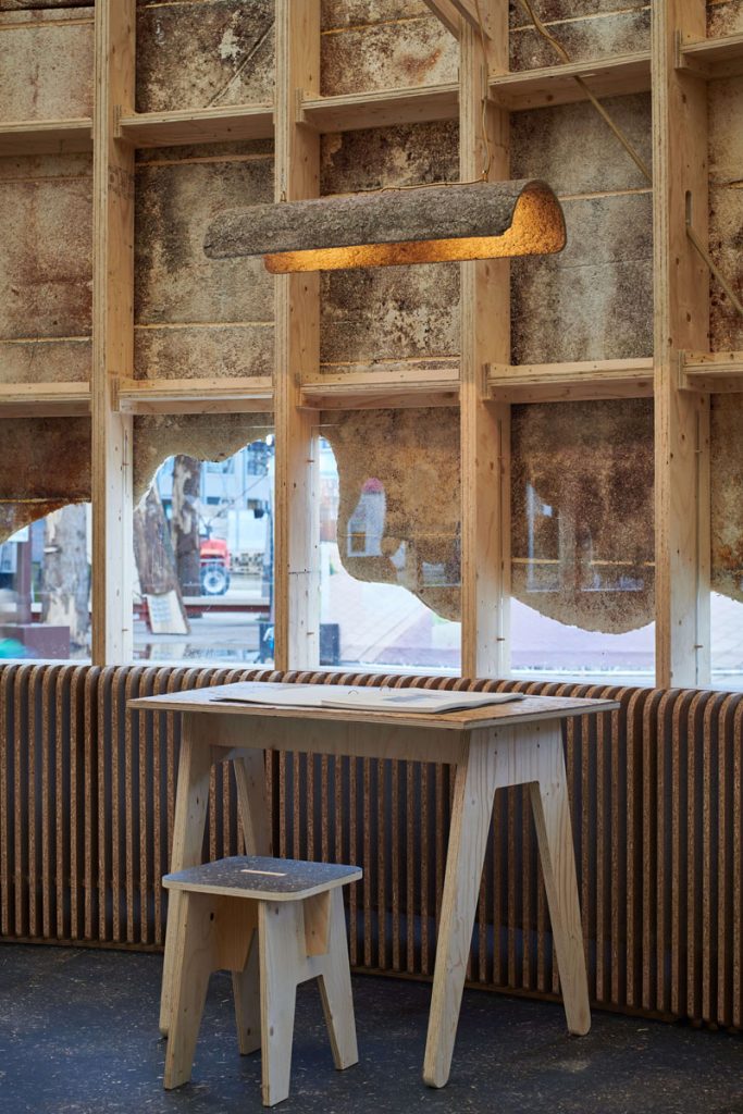 原來小小的蘑菇所蘊藏的「菌絲體 Mycelium」頗多功效。這種由真菌長成的纖維網狀集成體,如天然的生物膠水,可黏合不同原物料,短時間內自我修復及長出新結構。據科研實驗顯示,菌絲體用於建築時,還可賦予材料加倍的堅韌度,加上輕盈、可淨化空氣和隔熱隔音等特性,極富環保潛力。