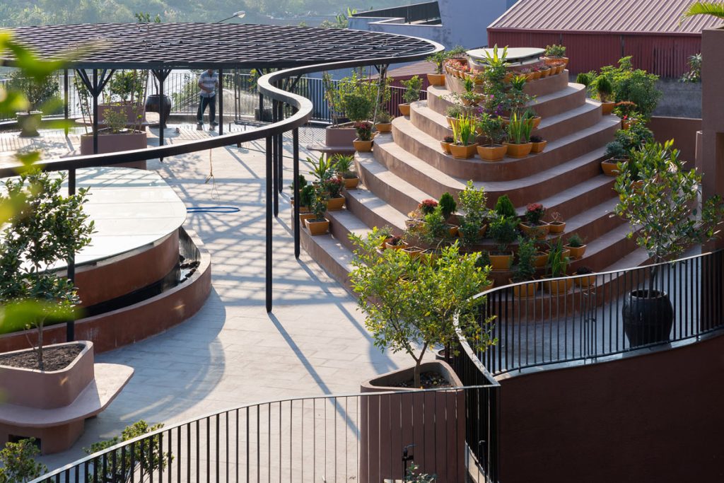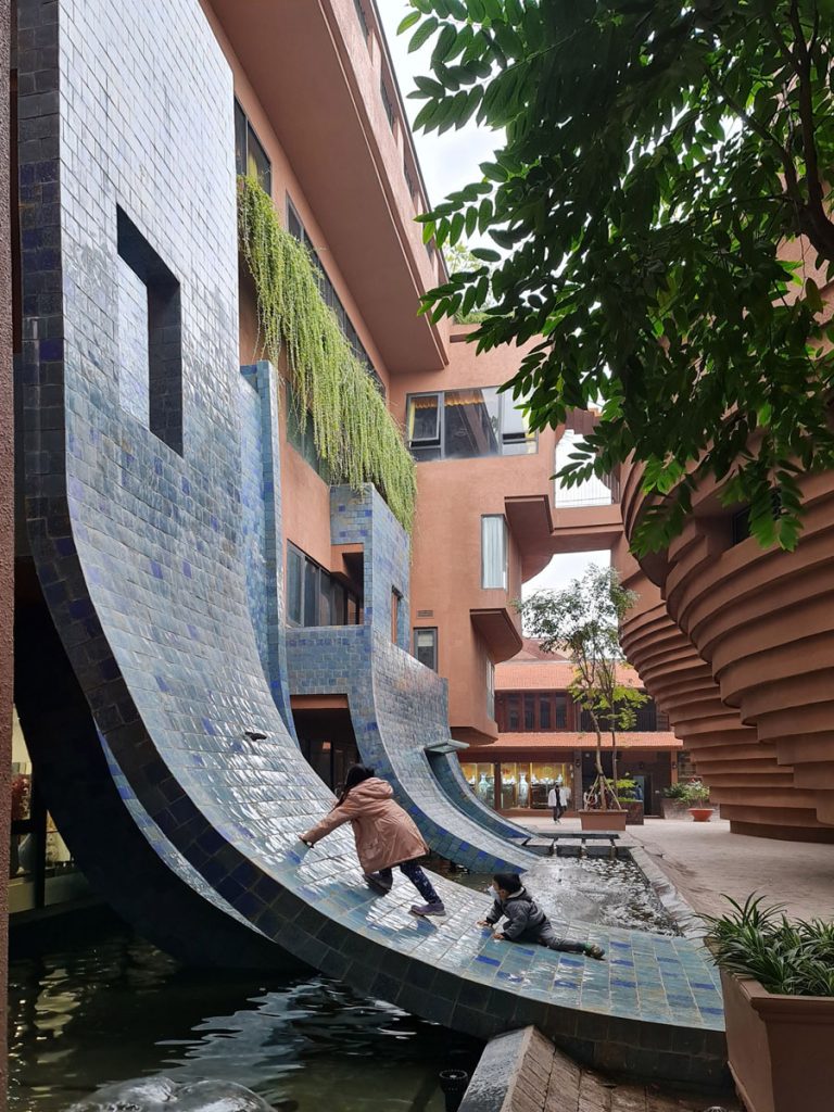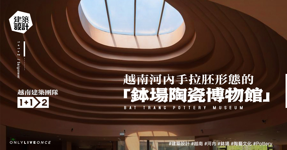 守護千年陶藝文化,「鉢場陶瓷博物館」應運而生。專責建設的越南建築團隊「1+1>2」參照製陶步驟,將手拉胚逐點拉高和拓寬的有機狀態,化作博物館外觀設計;建材則採用當地供應商製作,質量輕盈的纖維混凝土,構成逐層向上、向外疊加與擴展的建築結構;並加入土磚、馬賽克陶瓷和陶磚等物料,仿造陶泥的磚紅色調,又用磚塊搭傳統圓頂窯爐,從建築視覺上彰顯陶藝意象,展現鉢場的工藝特色。