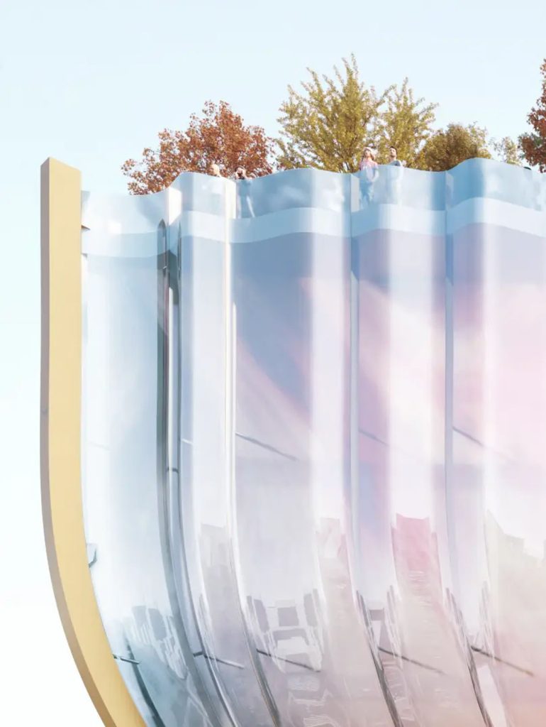 擺脫傳統百貨的老派和封閉作風,「HG 首爾店」外牆摒棄水泥牆,採用呈波浪紋的玻璃材質及流線形態,營造通體透亮的開揚感,讓路人一覽百貨內部動態。從地面層的兩大庭院、「沙漏腰部」(中間層)的開放式花園到樓頂的露天草地,又滿佈植物,使百貨如巨型園景般自然融入街區。日後,百貨又將使用各個公共空間,進行嶄新的藝術展演,定可為大眾提供更多交流創意的機會,體驗消費以外的逛街樂趣。