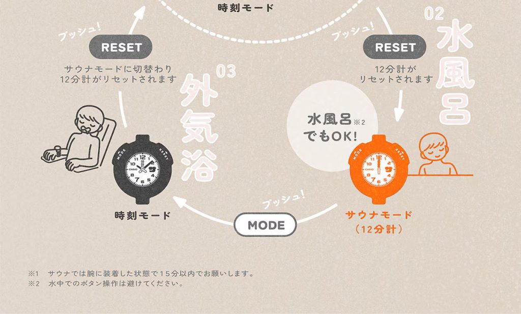焗桑拿有助放鬆精神、排出毒素,改善身體循環,但要留意,桑拿房內熱氣蒸騰,大家不便戴錶又看不清掛牆鐘,很容易不知時間流逝而焗過籠,反過來引發暈眩等不適。日本電子品牌 Casio 就此與桑拿平台 Sauna Ikitai 合作,貼心推出一款專為「桑拿情境」應用的「SA-TOKEI サ時計 CPP-002」新錶,以助人們安心享受 MeTime。