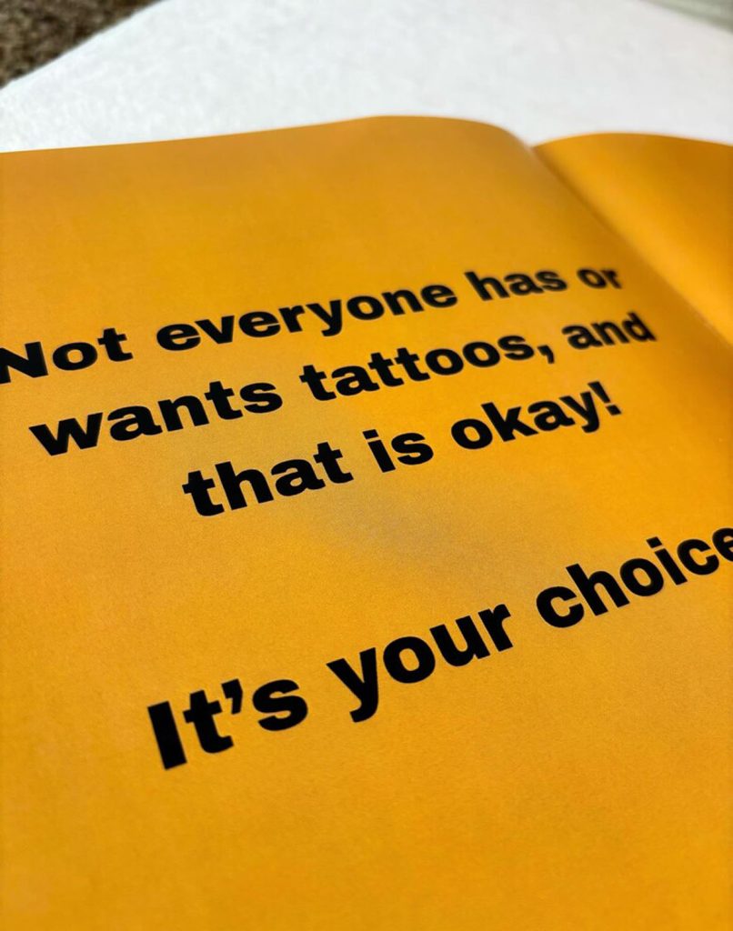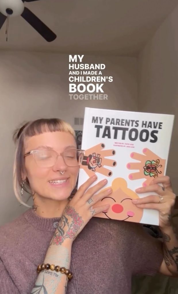 夫妻倆不欲大眾誤解紋身藝術,合力繪製了親子共讀繪本 《My Parents Have Tattoos》,試圖打破主流社會對「重度紋身者不適合為人父母」的錯誤印象。書中以生動圖文,簡單介紹了紋身是甚麼、紋身的美感多樣性,人們選擇紋身的原因,以及父母們的紋身小故事。