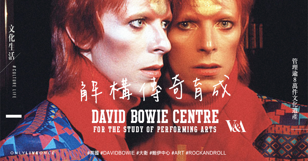 「我的整個人生是由實驗、好奇與任何看似誘人的東西組成的。」於 2016 年逝世、號稱「搖滾變色龍」的 David Bowie,擁有先峰性及跨時代的音樂、時尚及藝術創造力,英國 V&A 博物館就於其遺產信託者及各單位支持下,積極籌建全球第一所「大衛・鮑伊中心」(The David Bowie Centre for the Study of Performing Arts),以系統性手法管理逾 8 萬件文化遺產,建構傳奇之育成。