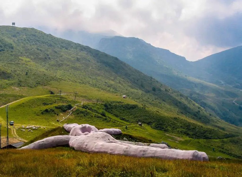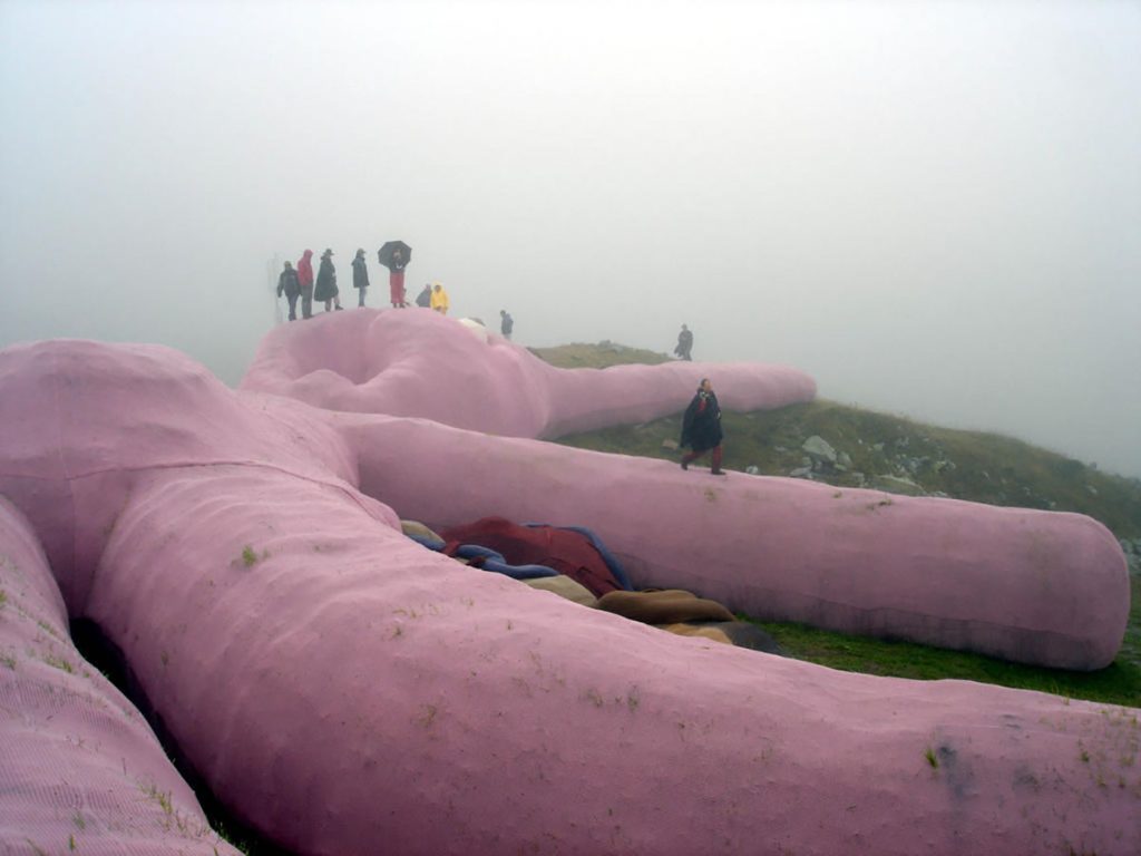 有說藝術永恆,但若作品的本體消失,其價值可會隨之消弭?2005 年,奧地利四人藝術團體 Gelitin 在意大利北部皮埃蒙特大區、海拔約 1.6 公里的 Colletto Fava 山巒之上,創作一組巨型藝術裝置「粉紅兔」(Hase,暱稱 Giant Pink Rabbit),往後 20 年間不作任何維護,任其隨自然氣候變化及消逝於塵土,詰問何謂「生命無常,精神永存」。
