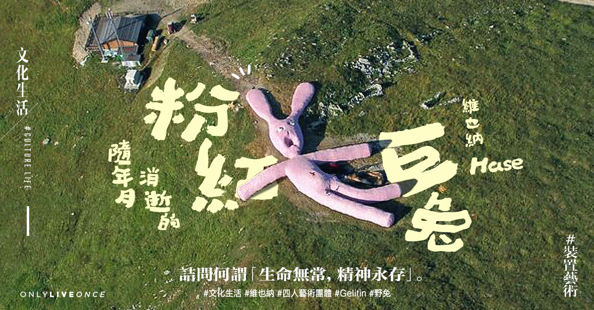 有說藝術永恆,但若作品的本體消失,其價值可會隨之消弭?2005 年,奧地利四人藝術團體 Gelitin 在意大利北部皮埃蒙特大區、海拔約 1.6 公里的 Colletto Fava 山巒之上,創作一組巨型藝術裝置「粉紅兔」(Hase,暱稱 Giant Pink Rabbit),往後 20 年間不作任何維護,任其隨自然氣候變化及消逝於塵土,詰問何謂「生命無常,精神永存」。