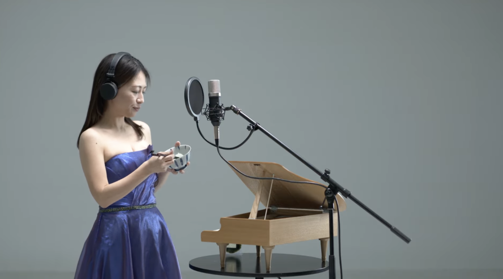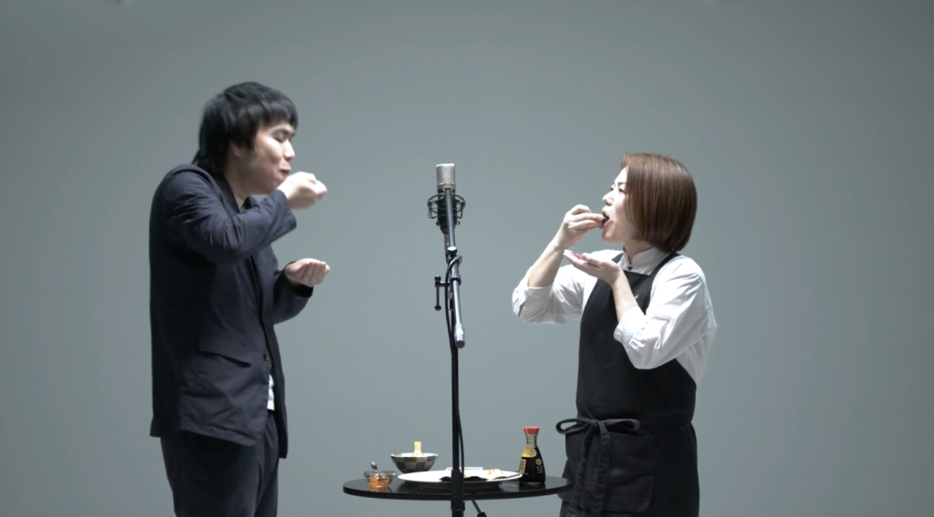 一眾來賓,包括足球公司老闆片岡健志郎、廚師 Masahiro Yoshikawa、地下偶像さくらいと等,他們不需唱歌,而是單人或兩人一組,在鏡頭前輕喚一句「我開動了」(itadakimasu),再專心地捧起餐具、咀嚼熱騰騰的米飯,最後滿足地吞咽食物,從而產生視聽均療癒又另類的 ASMR 聲效。