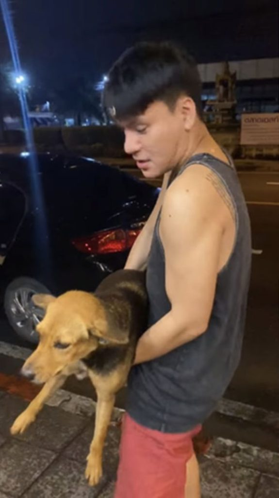 Yutthaphum 不知道發生了甚麼事,向好友們查問後,收到一段影片就明白了。畫面所見,醉爆的他在路上遇到一隻小狗,突然興起將對方強行抱回家,由於友人見他神志不清,恐怕沒法勸止,當時就先拍片紀錄,等其醒來再看怎處理。