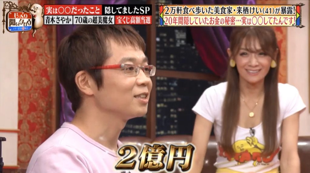 那段日子,來栖以一年 365 日三餐均外出用膳、平均日吃 10KG 的食物,嚐盡一眾米芝蓮或星級餐館,最矜貴一餐是吃大田原牛料理,一個部位就每位盛惠 40 萬日圓!雖然他吃得極豪爽,約 25 歲就花掉大半獎金,惟其沒忘記領獎時職員的提醒:請善用財富!