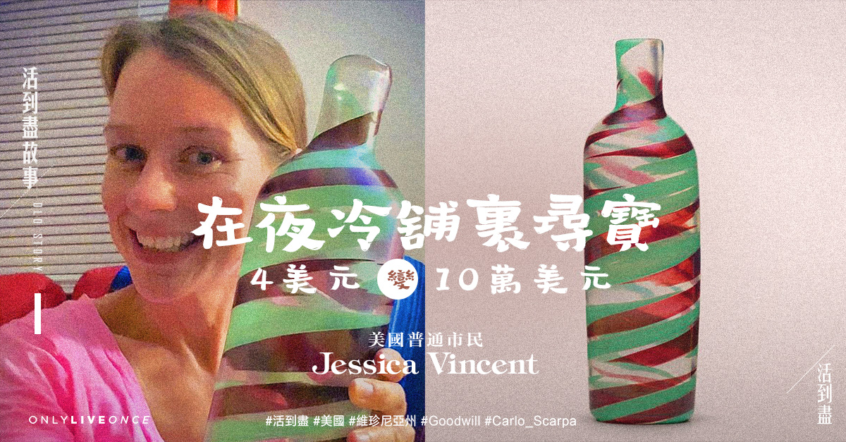 知慳識儉的 Jessica 向來喜歡到維珍尼亞州一所由慈善機構 Goodwill 經營的夜冷舖搜購二手貨。某次閒逛,她在擠擁的貨架上發現一個飾有海泡綠和酒紅條紋漩渦的精緻花瓶,售價竟然只需 4 美元,「看其造工精良,我直覺真正的價值或不只 1,000 至  $2,000 美元吧?」Jessica 猜想。