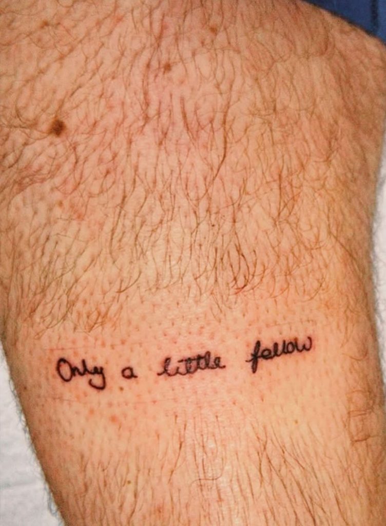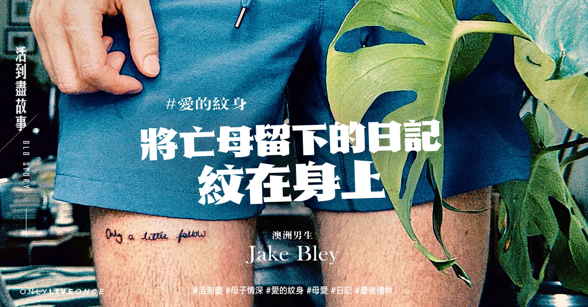 當至親逝世了,他們生前遺下的片言隻語,格外彌足珍貴。現居於美國底特律的澳洲男生 Jake Bley,就從亡母轉贈的舊日記中,抽取了媽媽誕下自己當夜所寫的第一句話:「Only a little fellow/只是個小不點」化成人生首個紋身,紀念母子情深。