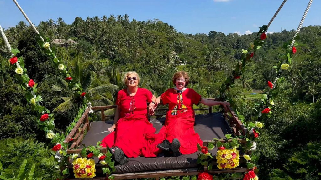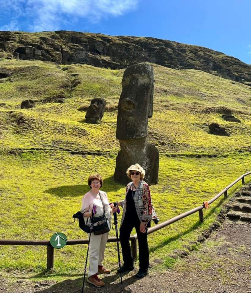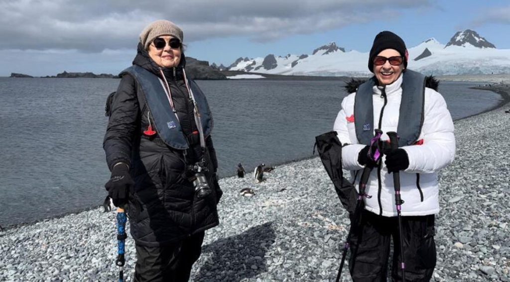 於是當疫情稍緩,81 歲的她們以南極為起點,在 80 日內遊歷 18 個國家。她們在芬蘭坐上由哈士奇拉的雪橇,觀賞過復活節島的摩艾石像,穿過非洲的沙漠,在埃及乘坐熱氣球,又走到北極看北極光,還有智利、西班牙、羅馬、澳洲、尼泊爾、印尼和日本等⋯⋯