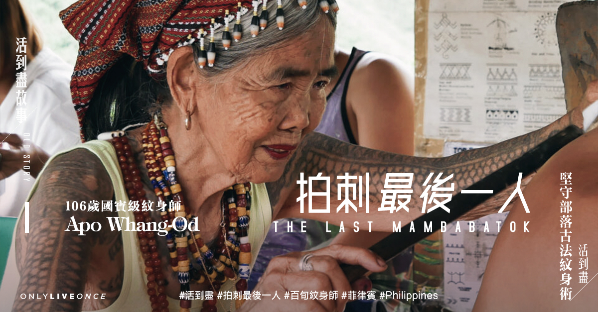 活至百歲仍願變通,需要勇氣和智慧,菲律賓 106 歲國寶級紋身師 Apo Whang-Od,從 16 歲起隨父學習布斯卡拉部落(Buscalan)的古老拍刺紋身術「巴托克」(Batok),至今熱情仍不滅。迎向新世代,她還積極連繫時尚及藝術界,發揮「拍刺最後一人」(The Last Mambabatok)力量,為瀕臨消失的無形文化遺產,在當代尋一線曙光。