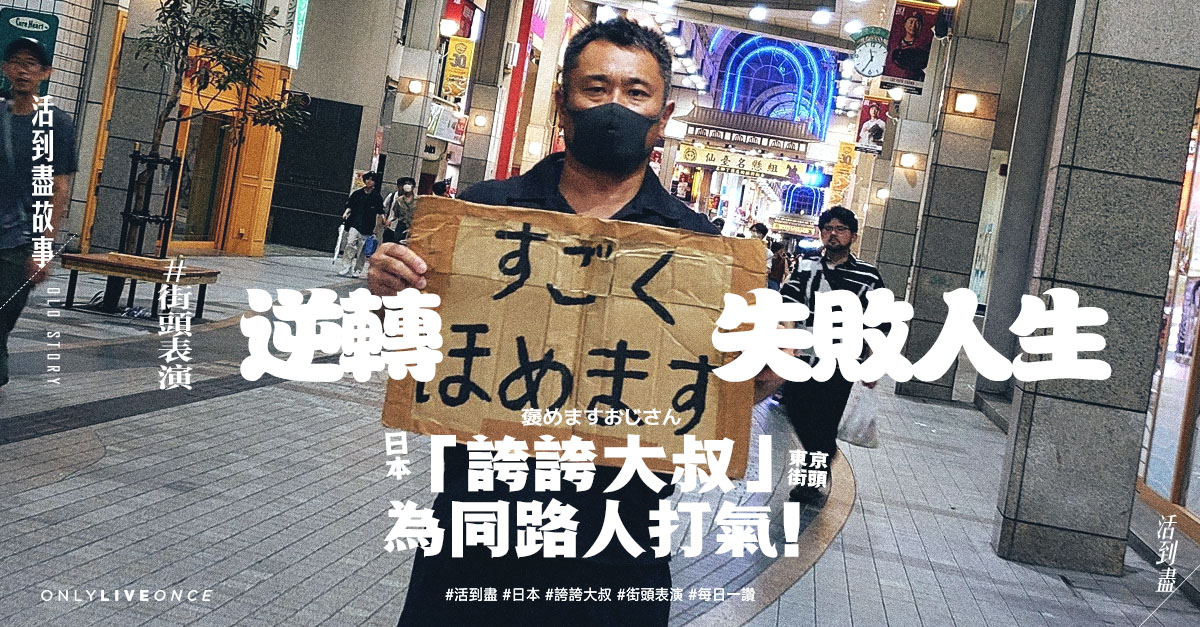 逆轉失敗人生  在東京街頭化身「誇誇大叔」為同路人打氣!