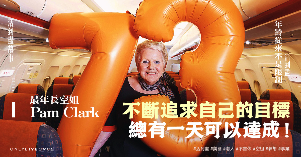 雖然她早已達退休年齡,然而,航空公司深受她的歷練和衝勁所觸動。她分享,這份工作讓她見識更廣,朋友更多。年齡從來不是限制,那只是傳說中限制我們生命可能的數字而已,只要你敢,做咗先算吧。就如 Pam Clark 所鼓勵,不斷追求自己的目標,總有一天可以達成!喜歡的,還可以一直做下去。