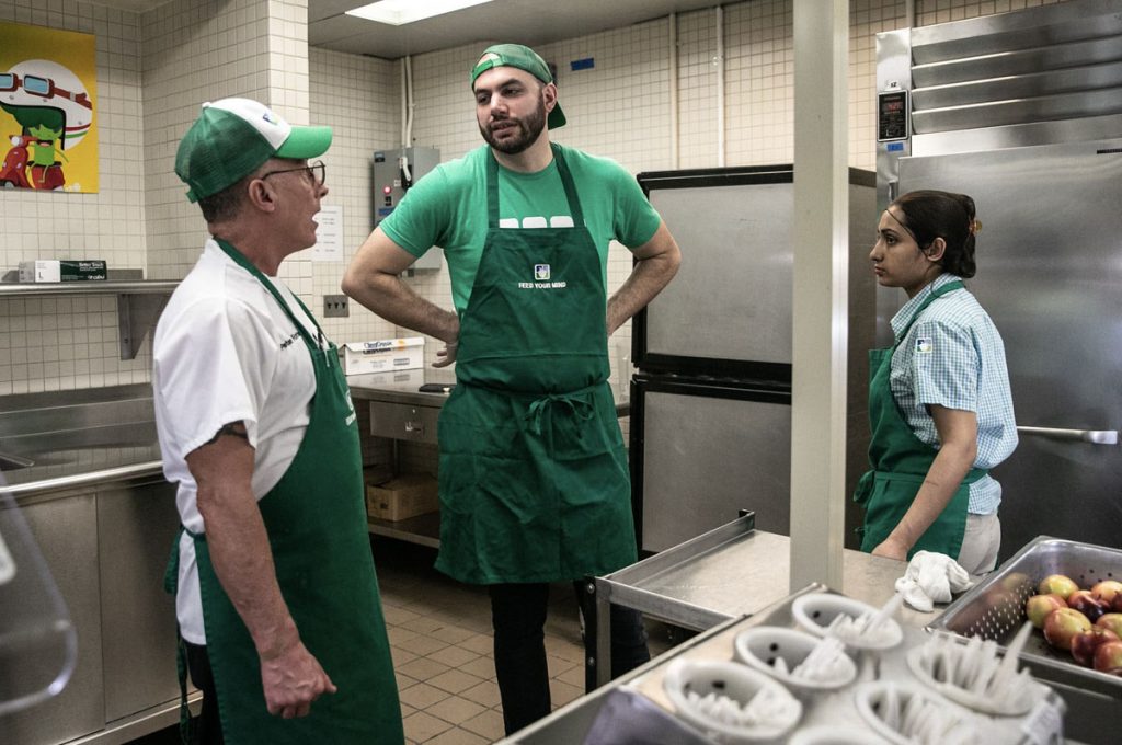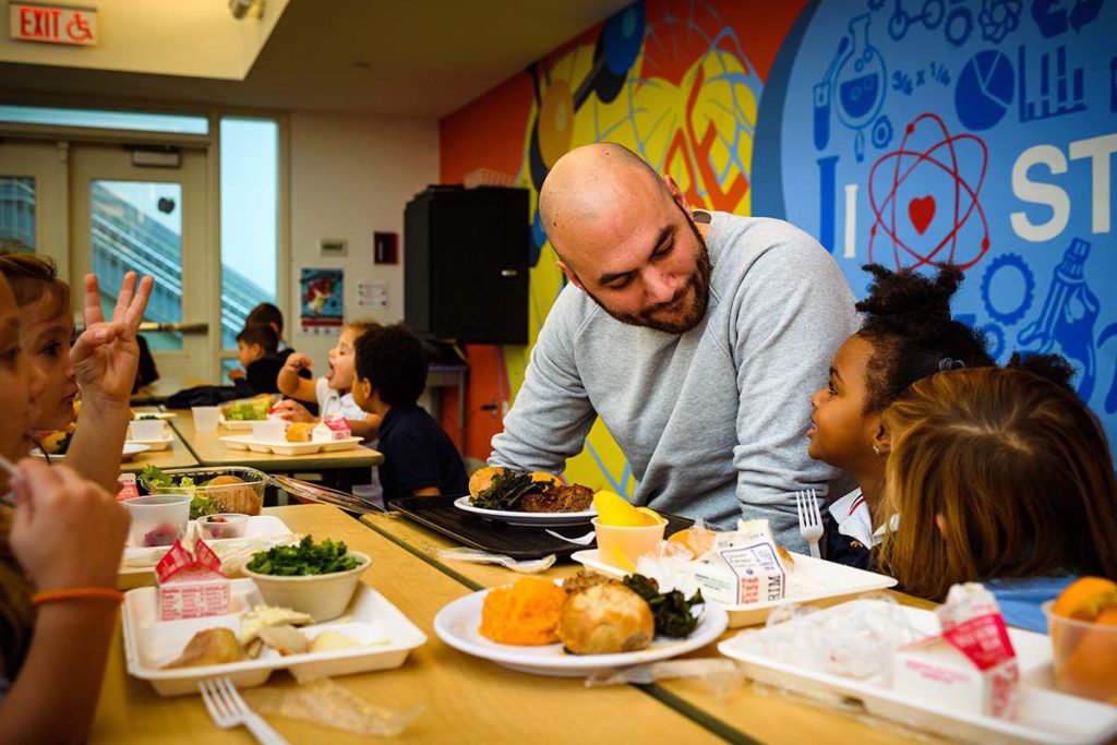 後來 Giusti 向 René 請辭,回美創立公司 Brigaid,選擇較貧窮的康乃狄克州公立學校為試點,開發「營養革命」先導計劃——針對聯邦政策下,多數學校常為嚴控成本,向食品公司訂購低質的加工或冷凍食品,他親身改變校園製餐程序,從設計菜單、購買原型食材,培訓專業廚師、管理廚房系統,到策劃兩周一次的社區晚餐等,逐步向校方、學童及家長灌輸飲食知識。