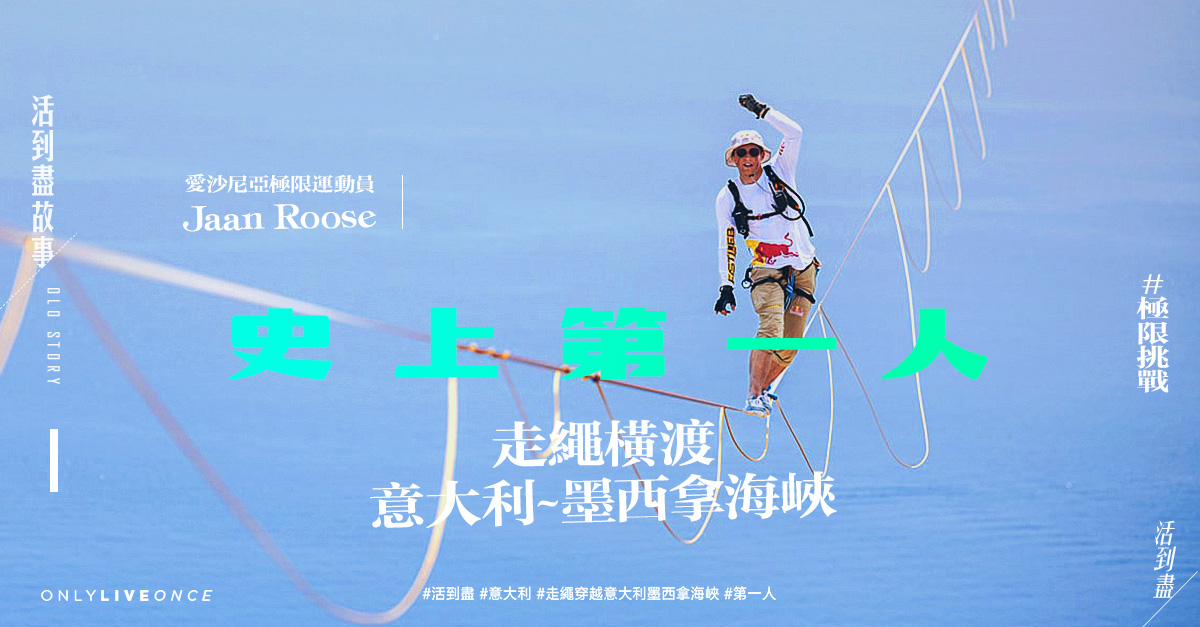 極限運動員最怕甚麼?「就是一直停留在原地,重複做同樣的事情。」三度成為「世界走繩冠軍」的愛沙尼亞極限運動員 Jaan Roose,拒絕複製別人的風格或技巧,年前他就以 32 歲之齡,成為史上第一人走繩橫渡「意大利-墨西拿海峽」(Strait of Messina),締造歷史。