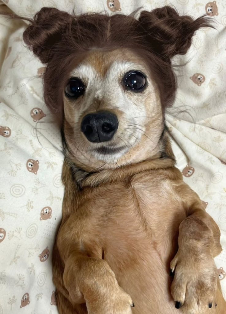 望着Jjigi和Daegi的「謎之互動」,飼主忽發其想給 Jjigi拍照,再使用美圖App將之變成一條「臘腸麵包」,逗趣地配合Daegi一臉陶醉的搞笑表情。隨照片上傳Instagram及Threads後,獲得親友和網民熱烈派Like和留言支持,激發飼主開始給愛犬炮製更多古靈精怪的造型。