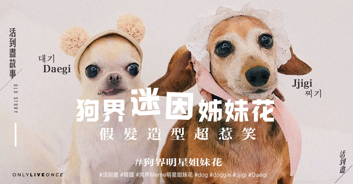韓國有位飼主為了給家中一對年過 13 歲老狗姊妹花創造珍貴的日常回憶,經常會給愛犬們配襯鬼馬的假髮,再拍照上傳網絡跟眾人分享。沒想到,無厘頭又百變的造型意外地治癒人心,使牠們突然爆紅成為「狗界 Meme 圖姐妹花」。