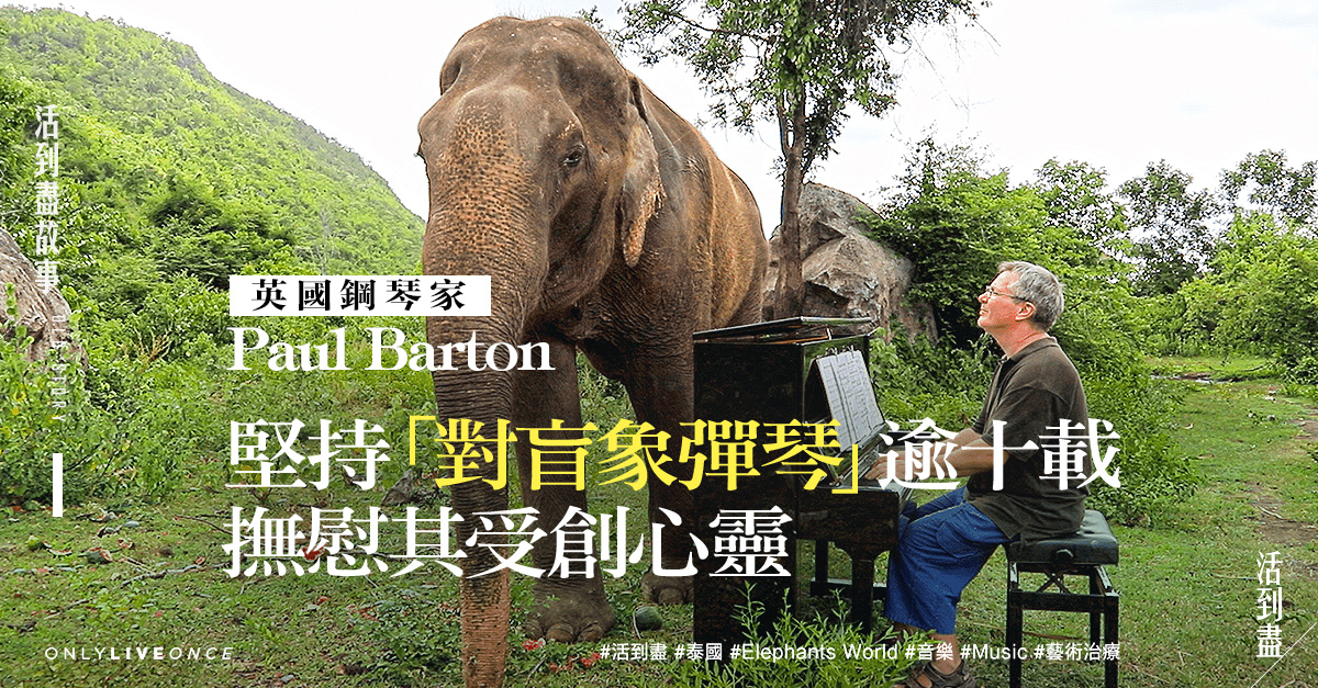 別看大象體型笨重,其實牠們智商高、記憶好又感知敏銳,是有靈性的動物,偏偏這優點亦使其遭貪婪人類勞役、虐打或濫捕象牙。英國鋼琴家 Paul Barton 不忍其慘況,十多年來堅持前往泰國 Elephants World 保護園區,為失明象群演奏鋼彈作藝術治療。