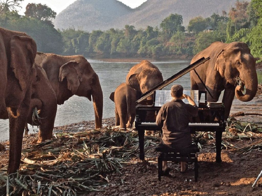 象群祥和反應。眾護工嘖嘖稱奇。皆因牠們過去因搬運木材,或被樹枝刺盲、或被主人砍牙及拋棄,長年情緒躁動、體能欠佳,罕見與人親近。這觸發園方跟 Paul 和 Khwan 合作至今,前者為象群演奏巴哈、貝多芬及莫札特等古典樂,後者製作雕塑,以藝術陪伴曾苦盡甘來的可愛生物安享晚年。
