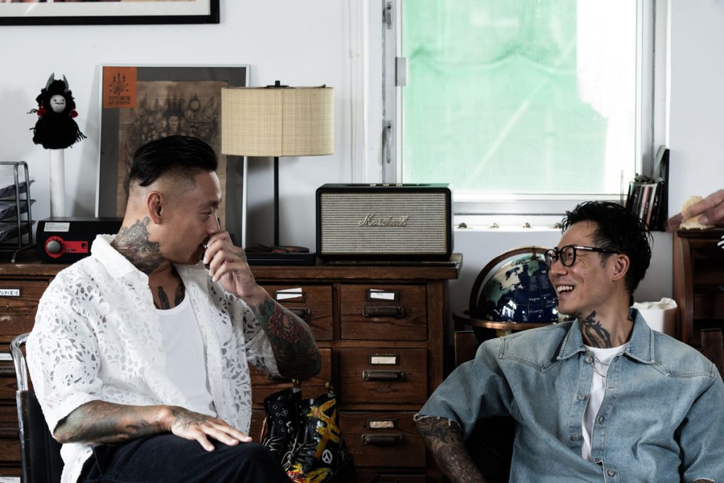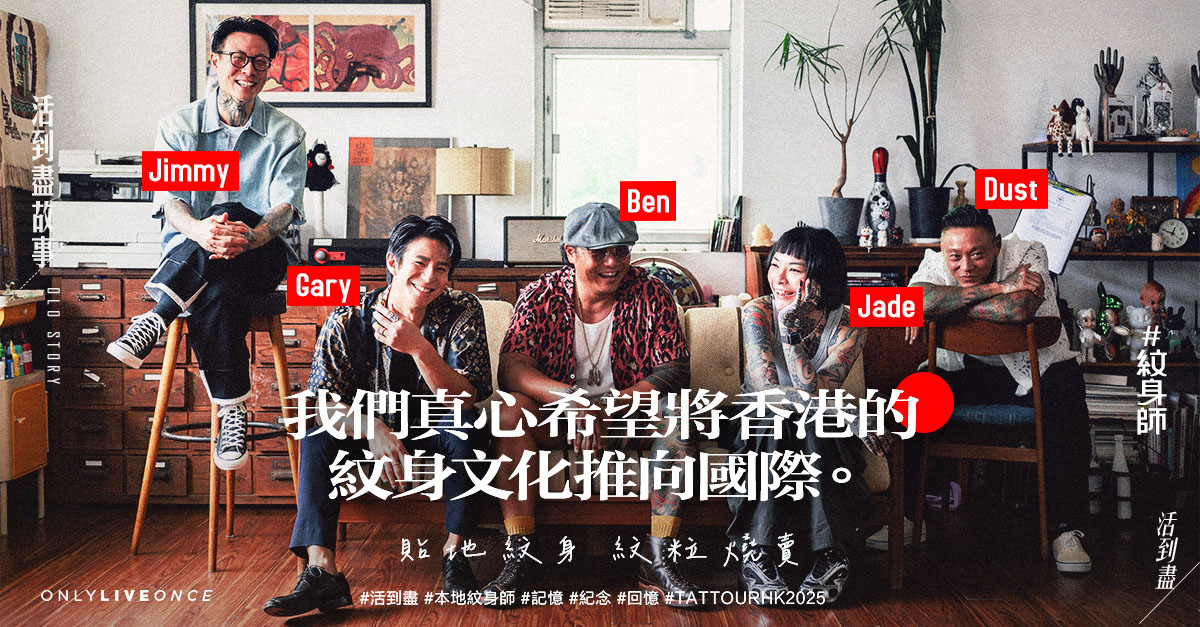 「𡃁仔,身份證。」滿身紋身的紋身師老鬼胡仔(Dust)和Jimmy Yuen不約而同地笑着說。「有時,一日隨時俾人『逗』兩、三次。」Jimmy補充說。「要做壞事就唔會張揚啦。」胡仔時笑着說。二十年前開始紋身,之後成為香港最著名的紋身師之一,近年積極推廣紋身藝術,二人也是今年矚目「紋化界」盛事「TATTOUR HK 2025」香港紋身展的創辦人和搞手。