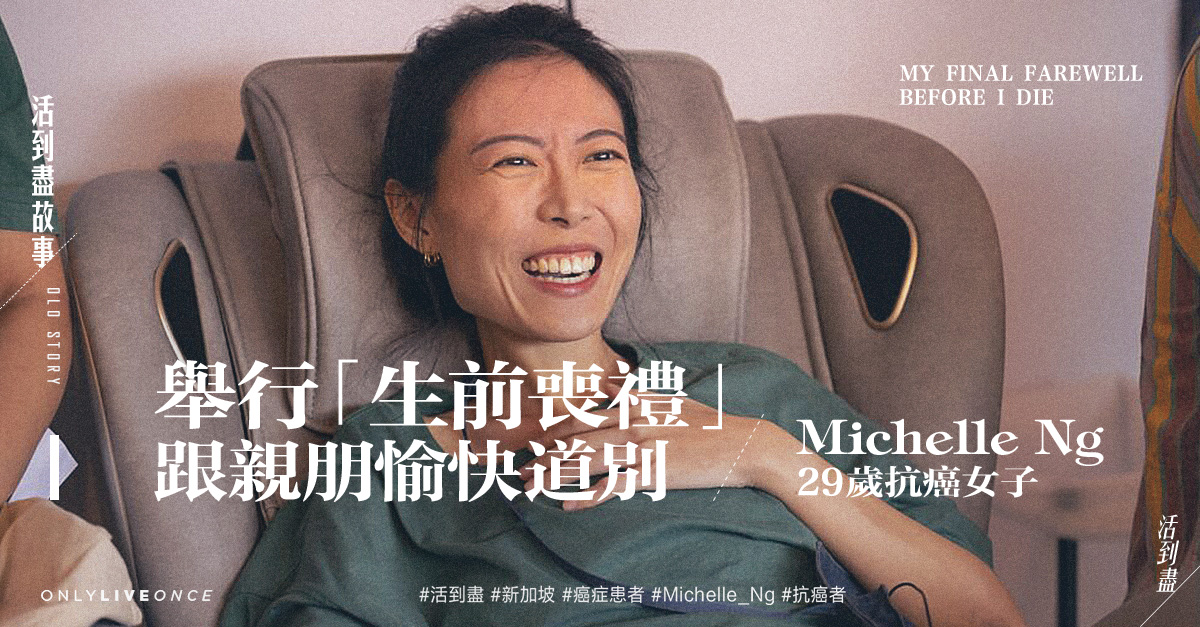 罹患癌症,意味身體將承受連串治療,心靈亦需飽受連番折騰;但晴天霹靂過後,亦有患者豁達面對不幸中大幸,YouTube 話題影片《My Final Farewell Before I Die》的癌末患者 Michelle Ng 就認為比起突發死亡,臨終尚有餘裕辦生前喪禮跟親朋告別,亦是最後福氣。