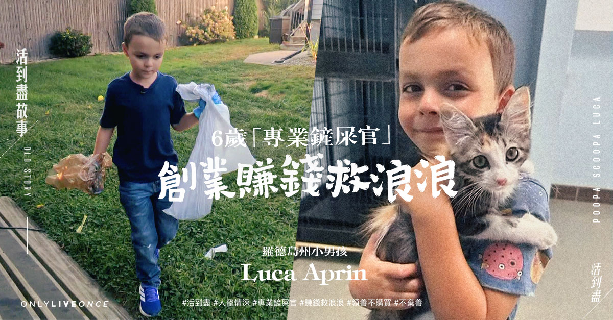 真愛不光靠口頭承諾,更要實際行動!美國羅德島州(Rhode Island)的 6 歲小男孩 Luca Aprin,為向媽媽證明領養貓咪的夢想,不是一時衝動而是終生責任,大膽開創一家清潔公司「Poopa Scoopa Luca」,專協助飼主「鏟屎」清理貓狗的便便,親身賺錢救助浪浪們。
