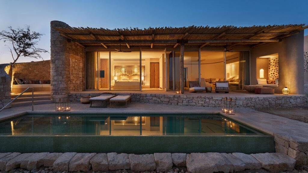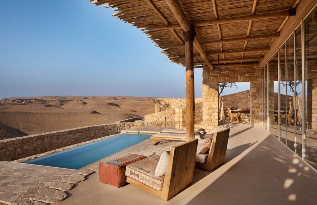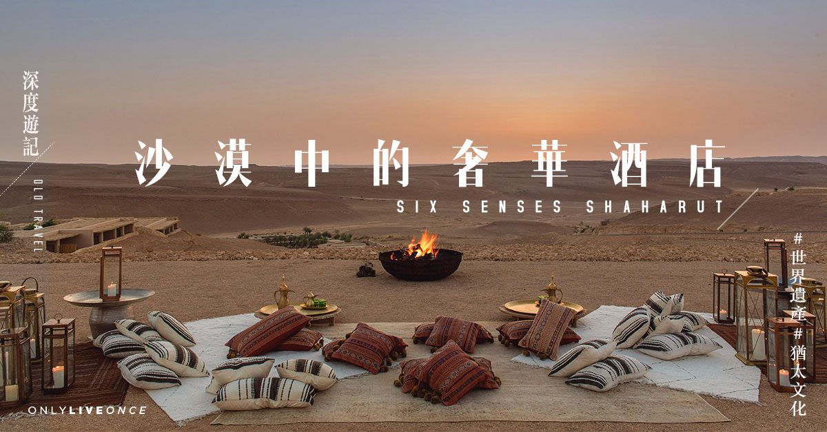以色列沙哈魯特的奢華新酒店「Six Senses Shaharut」或可滿足想像。它由提倡「慢生活」的國際酒店品牌 Six Senses 主理,強調引領都市人遠離煩囂、回歸心靈。Shaharut 選址的內蓋夫沙漠南部阿拉瓦山谷(Arava)遠離繁華城鎮,地景乍看如月球地質,氣勢壯闊。當旅客從特拉維夫乘私人直升機前往酒店,居高臨下會產生「遠離地球,到訪外星」的夢幻感。