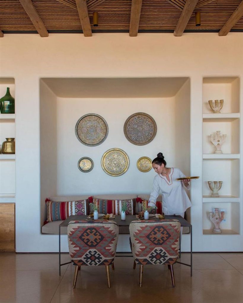 Shaharut 順應沙漠美景規劃:建築從外到內,用上「米、土、棕色」為主調,建材選用當地原色岩石,配搭竹和藤等建設屋簷及擺設;酒店內的傢俱,又由當地工匠以天然石材、木材和銅製成,部分物料更來自廢棄的船隻、房屋和人行橋中回收的柚木,具可持續發展的精神;為使每個房間更寬敞,保持環境靜謐,全館只提供 60 間套房,全部設置大型落地窗、門廊與庭院,好讓旅客 24 小時於半開放式狀態下,感受被荒漠包圍的磅礴。