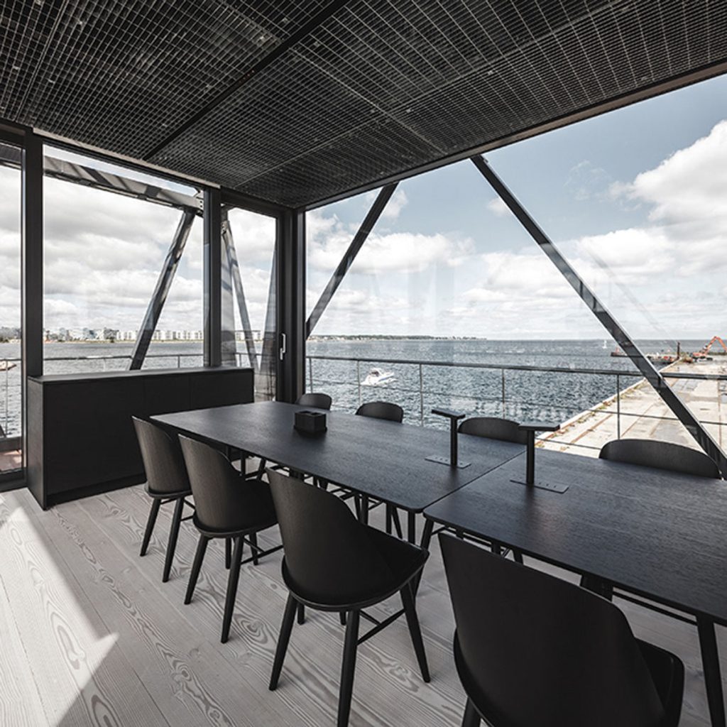 丹麥建築團隊 Arcgency 就改建一座位於哥本哈根港區 Nordhavn、早於 1944 年建成的煤炭起重機,將它搖身一變,成為酒店「THEKRANE」。「THEKRANE」取自起重機(crane)的字音,原先位於起重機最高層的引擎室,現在成為可遠眺海洋的雙人睡房。夾板和貨櫃等則變成會議室、Spa、客廳與陽台。