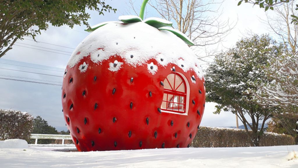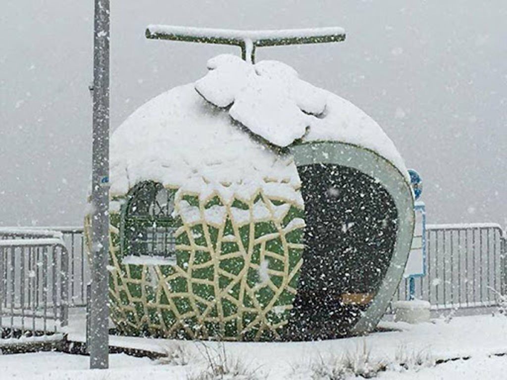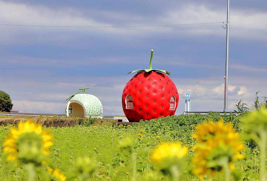 16 個的巴士站分別以哈密瓜、香橙、草莓、西瓜、番茄等五款水果為造型,每個高 3-4 公尺,遠看像極一個個巨型水果散落在田野間,既可愛又療癒。夏天看十分清新,到了冬日又有另類溫暖感。細看之下,水果的外皮也造得維肖維妙,由葉子、形狀到紋路都一絲不苟。乘客還可以走進果肉之中候車, 就似闖進了童話世界一樣夢幻。