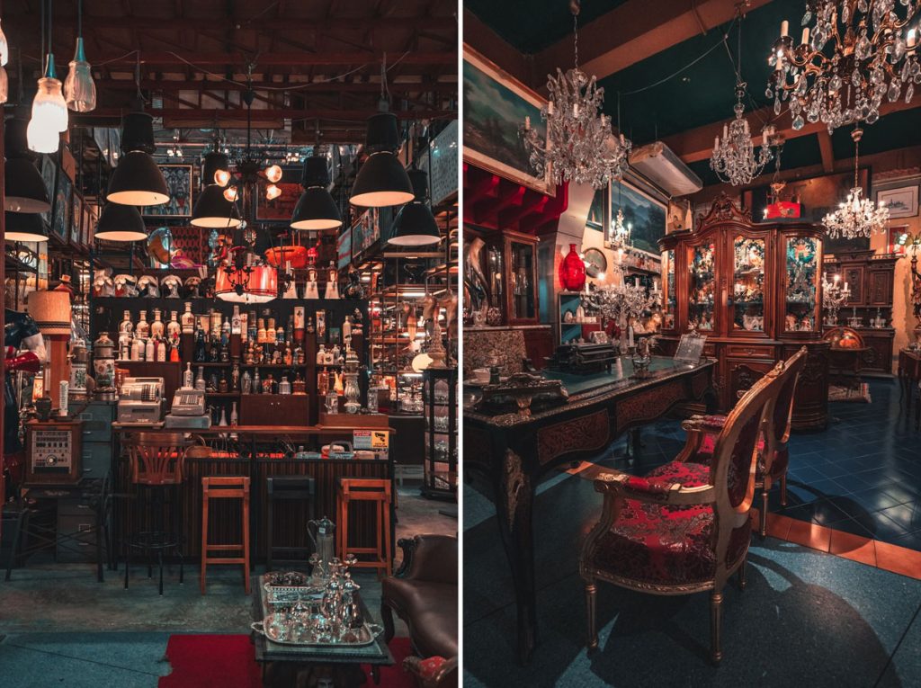 遠離旅遊中心地帶的 Papaya Studio,年中吸引不少古董迷、美術、攝影及創意工作者到訪。這間私人店舖於 1981 年成立,佔地約 6612 平方米、樓高 3 至 4 層,其內部空間設計不算華麗,但從入口開始,每道走廊、牆壁、層架上,以至天花懸垂之處,均放置了琳琅滿目、搜購自東歐及英法德等地的古董物件,譬如復古家俱、古董單車、人形玩偶、貴族茶器、古老鐘錶、影音器材,甚或流行文化副產品等,風枱網羅復古未來主義及巴洛克等類型。據店員保守估計,現時總藏品數量或已超過十萬件之多,叫人目眩。