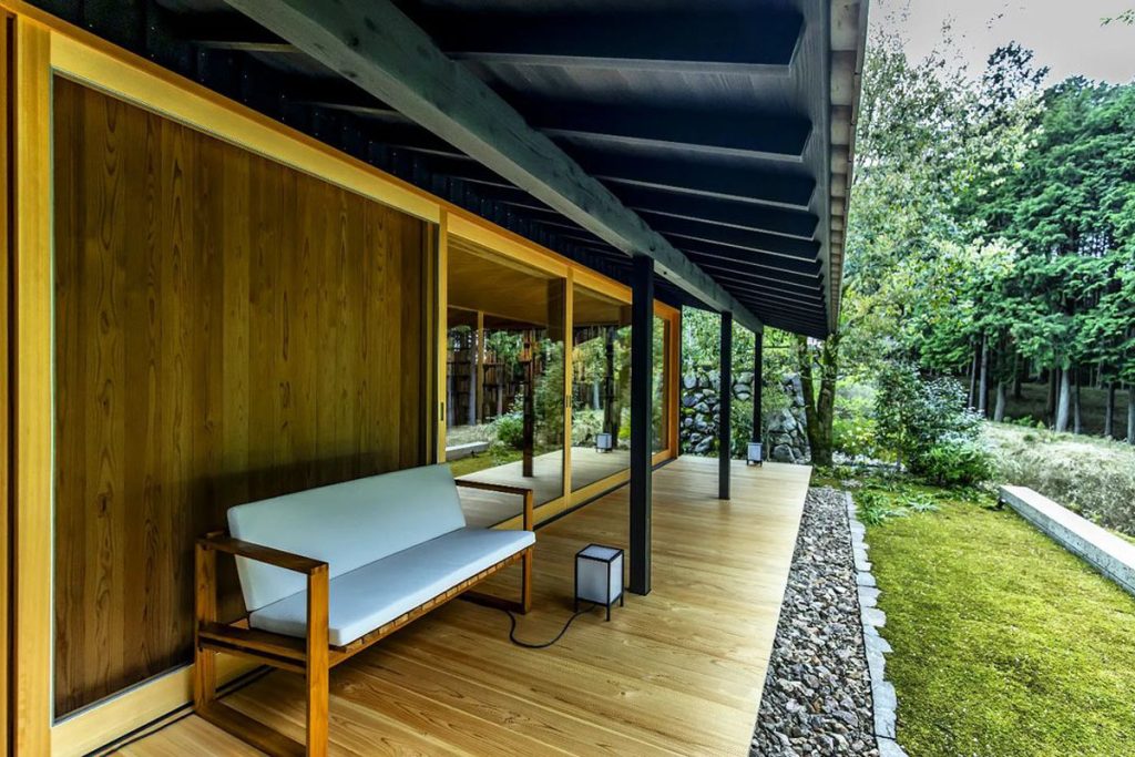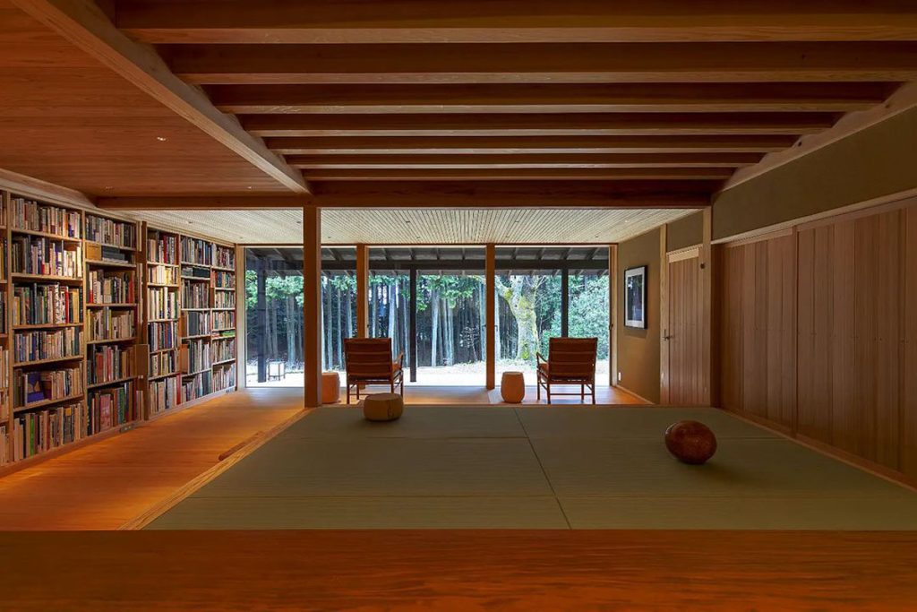 有感網絡資訊紛繁、連 A.I 亦可創造話語,幅允孝亦常思考人與紙本書籍的關係將何去何從?故「鈍考/喫茶 芳」定位亦回歸基本,期盼保持讀者與書籍間純粹的精神溝通。如選址遠離市中心,座落於檜林山景和小川溪流中,建設由堀部安嗣建築設計事務所及羽根建築工房,採用日本傳統的古法施工,盡量融入靜謐氣息。
