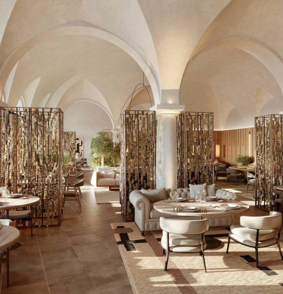「修道院大酒店」跟那不勒斯國際機場及市中心距離近、佔地利,惟建築物歴盡 800 年風霜,必須深度修復,才可供入住。建設團隊尊重歴史,妥貼保護外牆原有材質和色彩;盡力維修裝飾性的迴廊、大理石聖壇,還有馬約利卡瓷磚地板的巴洛克風格教堂等。
