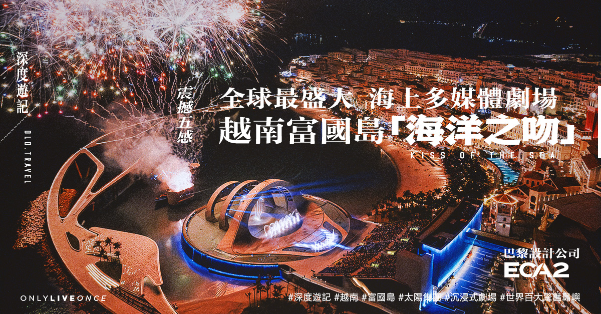 浩翰汪洋予人無盡幻想,位處越南西南邊的旅遊新貴富國島(Phú Quốc),就妙用絕美景致融合「水、煙火、舞蹈、音樂及故事」等元素,創造一個雲集逾 60 位寰球藝術家,堪稱史上最盛大的海上多媒體感官劇場《海洋之吻》(Kiss of the Sea),讓旅人體驗極致的浪漫與激情。