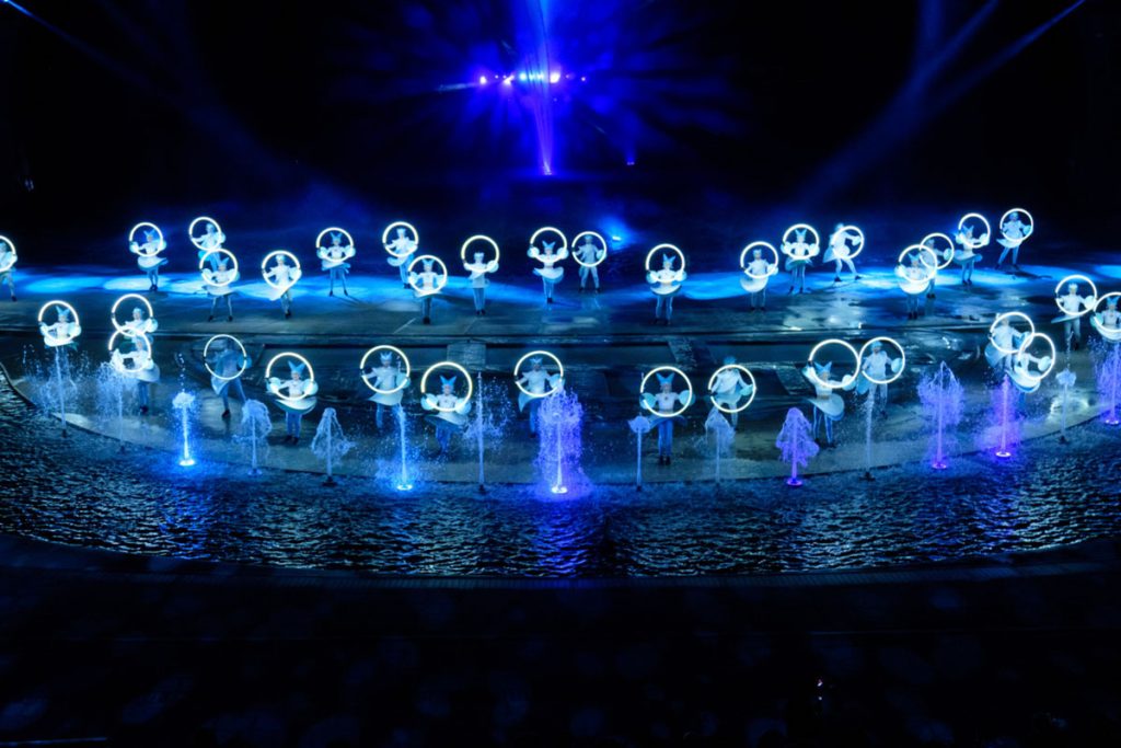 劇場耗資數百萬美元及最頂尖的科技,建設出 1,000 平方公尺的巨大海水屏幕,而多層次自由舞臺則配備三組投影穹頂和三百台設備,可完美呈現絢麗特效,並搭載藝術家們一系列彈跳、芭蕾、驚奇特技、優美體操及自由式舞蹈等。每場戲劇尾聲,更有瑰麗煙火燃亮海島夜空,將奇幻之旅推向高潮。