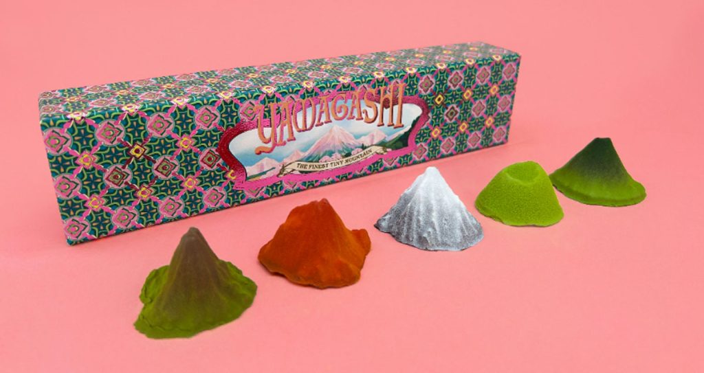 除了富士山外,還有北海道的利尻山、大分縣的由布岳以及鹿兒島的櫻島御岳等等,每座山的山形都依照原型而設計,非常逼真。每款山菓子都配上當地土產或食材而做;不得不佩服日本人的細膩和心思,無得輸。