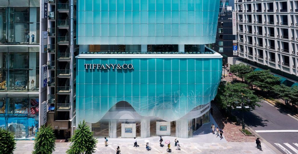 全新興建的 Tiffany 銀座店,請來日本建築師青木淳(Aoki Jun)和美國建築師 Peter Marino 操刀設計,紀念兩地之間逾半世紀的歷史及文化牽絆。專責建築主體的青木淳,主張每一條「路」是城市的筋脈,依傍道路而生的建築物則為有機體,例如 2021 年為 Louis Vuitton 設計的銀座並木通店,就採用流水波光為概念,備受讚賞。