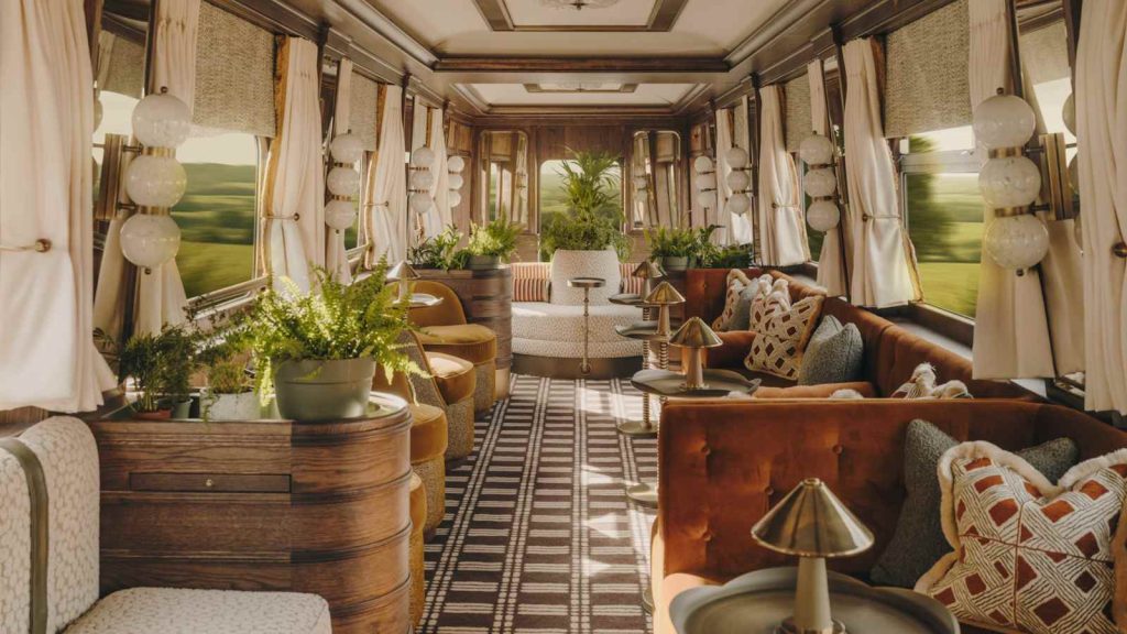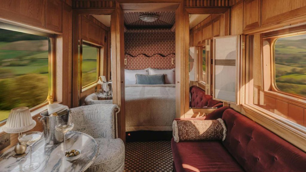 品牌重視車內配置,請來倫敦著名設計工作室Albion Nord操刀共18節車廂,包括3個豪華套房和15個套房的裝潢。總監 Benjamin Johnson以「英國常見植物」為靈感,為豪華套房融入如纈草、杜松及接骨木等色彩和紋理,選用大量木材、石材、羊毛等天然物料,營造質樸色調和溫潤觸感。