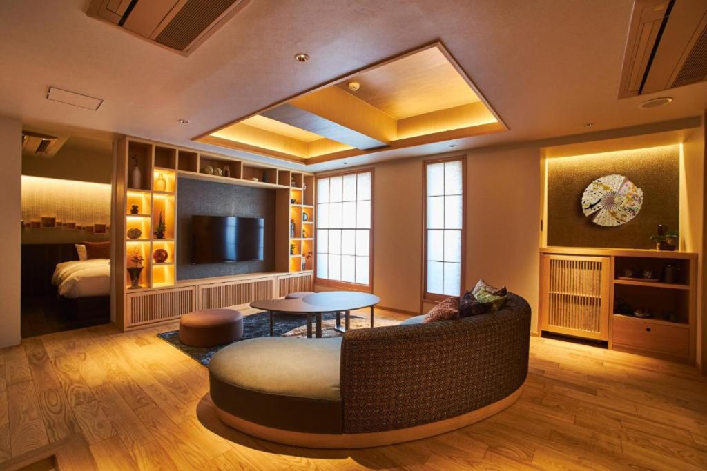酒店設計亦滿載「酒」元素。酒吧規劃成氣派的「神棚」,住客可身穿和式便裝在此獨酌或歡聚。客房採用和風佈局,陳設與酒相關的飾品,部份備有日式澡堂。其他樓層則設公共露天澡堂、三溫暖,頂樓足湯更可邊泡腳、邊品酒,乘着微醺觀賞晴空塔美景。