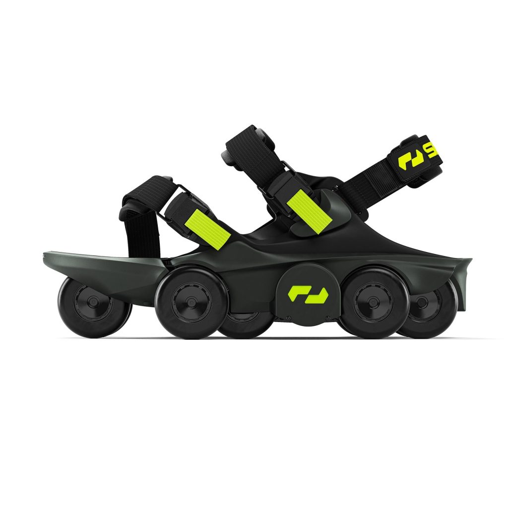 但別小覷這塊小板子。由於鞋底裝配上 8 顆 PU 滾輪,跟直排輪滾輪相同,惟排列方式並非單一直線,故此穿戴者不必擔心平衡問題;另外,腳趾與腳掌位置的連接處,又細心用上絞鍊設計,使穿戴者走動時,可以貼合腳掌運動,作出正常彎曲,感覺更舒暢和自然。