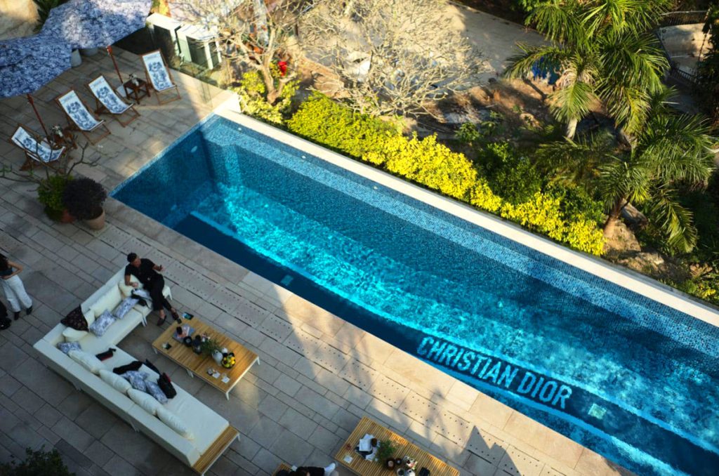 品牌最近在香港推出#DiorPrivate,於西貢找來一間豪華別墅大造改,加入多個品牌元素:外牆貼上 Dior 貼紙、家品全是 Dior 擺設,就連餐桌上全部都是 Dior Maison 的絕美餐具!別墅內據知還有麻雀房、桌球房和卡拉 OK 房,最吸睛莫過於 Dior 游泳池,底部鋪上 Christian Dior 馬賽克,非常有型,一點都不俗套。