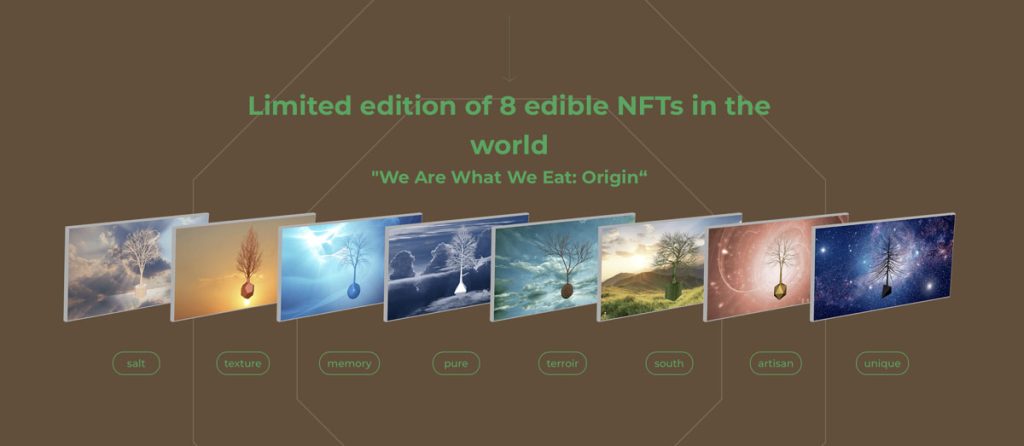 首先,主廚江振誠以「八角哲學的八個元素及盲盒生成方法,創作了 512 顆「Seed NFT」「NFT 料理」;接着,FineDayClub 最高級會員可優先購入「最後 100 顆 Seed NFT」,並享有這間號稱「全台灣最難訂位餐廳」的優先訂位權乙次,以及參與「創作者之夜」及加點「隱藏版料理 Pomme et Terre」;宴會上,所有來賓可親身體會 VR與舞蹈結合的視聽震撼,以及親嚐佳餚的風味,還可以投票給 1 顆 「Origin NFT 創世樹」,再透過 VR 互動設計,將灌溉「創世樹」成長歷程呈現於 EchoX「We Are What We Eat」策展頁面,「收藏」NFT 跨越虛實的奇幻一刻。