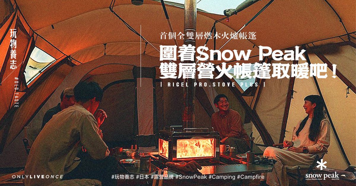「營火」是露營必不可缺之物,無論用以生火烹調、夜裡供營友照明暖身,或圍坐篝火前觀星作樂,都有助提升舒適度及樂趣。但非人人熟練搭爐升火等技巧,戶外露營用品名牌 Snow Peak 特意研發自家史上、第一款配備可燃木火爐的全雙層帳篷「Rigel Pro.Stove Plus」,提供更安全和便捷的野遊好物。
